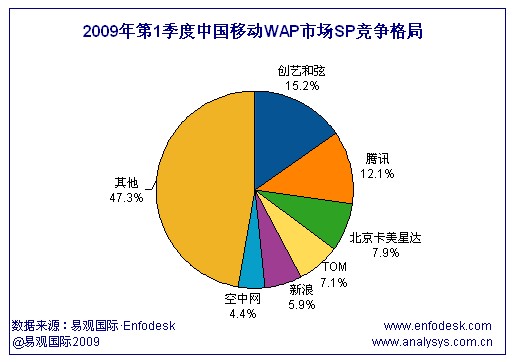 2009年第1季度中国移动WAP市场集中度提高前五名占据市场半壁江山