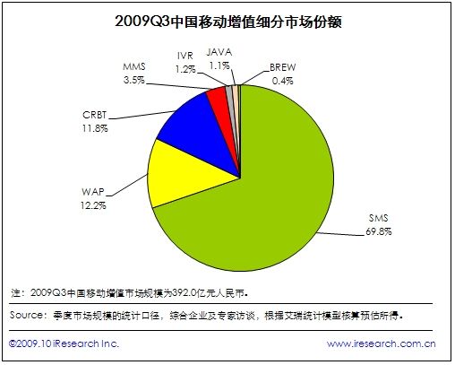 10月28日消息,艾瑞咨询分析师王冬发布的《2009年第三季度中国移动增值市场监测报告》研究显示,2009Q3中国移动增值市场规模稳步发展,WAP业务市场份额较快增长。