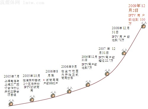 上海电信IPTV用户12月3日突破百万大关,比原本预计的发展时间提前了近一个月。从2006年10月正式商用,发展到2009年12月,上海已经成为全球最大的IPTV本地网并且是唯一用户规模过百万的城市。