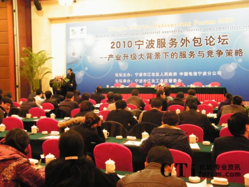 CTI论坛(ctiforum)1月26日消息(记者 杨悦),近日,由宁波市江北区人民政府和中国电信宁波分公司主办,工业区管委会承办的2010年宁波服务外包论坛在远洲大酒店拉开帷幕。宁波市江北区人大常委会副主任王伯宁主持论坛。本次论坛围绕“营销创新、服务创新、管理创新”的主题,来自呼叫中心行业的管理人士、技术人员、权威专家,集中探讨客户服务管理与新型市场渠道创新的难点与热点问题。中国电子商务协会副理事长、CTI论坛总经理秦克旋、中国电子信息产业发展研究院副院长卢山、宁波市江北区人大常委会副主任王伯宁、中国电信宁波分公司方建华、国际CC-CMM呼叫中心标准委员会特聘专家雷扬博士出席会议并作重要讲话。