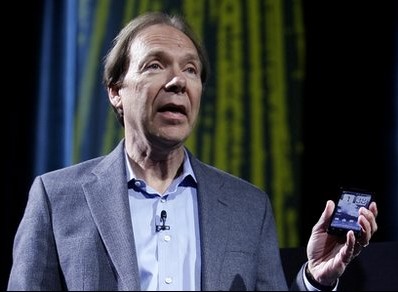 图:Sprint CEO丹·海斯(Dan Hesse)在美国无线通信展上展示宏达电新手机Evo 4G