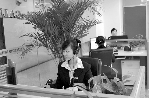 图:龙泉驿区市民呼叫中心,工作人员正在接听市民电话