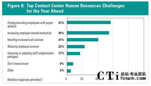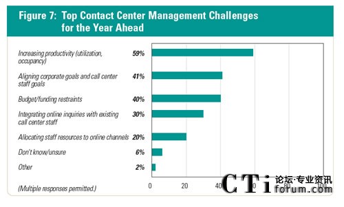 73%的公司表示,呼叫中心是公司面向客户的窗口。 57%的呼叫中心管理者正在经历答疑或保持员工在中心拥有合适的技能。此外,41%的人表示,处理增加的呼叫量是呼叫中心未来一年面临的主要挑战。