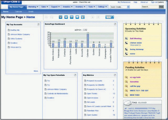 vtiger CRM是一个主要面向中小企业的开放源码CRM软件,是一款易安装、企业级、免费的CRM软件。它建立在许多开源组件上,提供更丰富的使用界面、报表、转移工具,并支持多种数据库。vtiger CRM使用快速高效且久经考验的LAMP/WAMP(Linux/Windows、Apache、MySQL和PHP)技术以及其他开源工具开发。