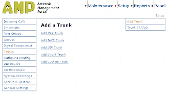 有四个不同的中继类型可供选择:ZAP, IAX2, SIP和ENUM,再加上一个自定义类型,你所选择的VoIP服务提供商应该有相关的信息来指导你选择哪一个具体的类型。