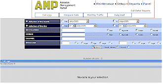 在图6所示的系统状态页面中,大家可看到有“”Reboot和“Shutdown”按钮排列在下部,在你运行AAH的机器离控制计算机很远的时候这个功能很管用。报告标签(图7)看上去非常简单,只有四个类别:呼叫记录、比较记录、月流量和日负荷,在这些报告中有些内容显示不全,但系统又不让你来调整数据的宽度范围。