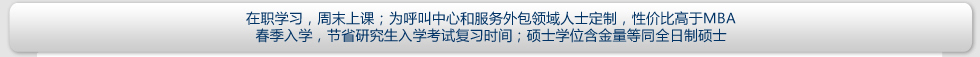 | 报名条件 | 拥护中国宪法,遵守法律、法规,品行端正,身体健康,并能坚持在职学习; 大专及以上学历,旨在提高本人专业素质和学历层次的 社会在职人士均可报名;择优录取。 呼叫中心、服务外包领域的中高级从业者,英语基础良好的人士将获得优先录取机会。 |