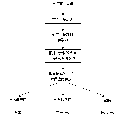 在确定规模和电子商务的影响之前,应该先花费些时间分析一下环境条件。图2提供了一个框架结构,可用于确定实现电子商务支持最好的方式。记住,这只是确定你希望采取的步骤的第一步,下一步将选择一个销售商或供应商。